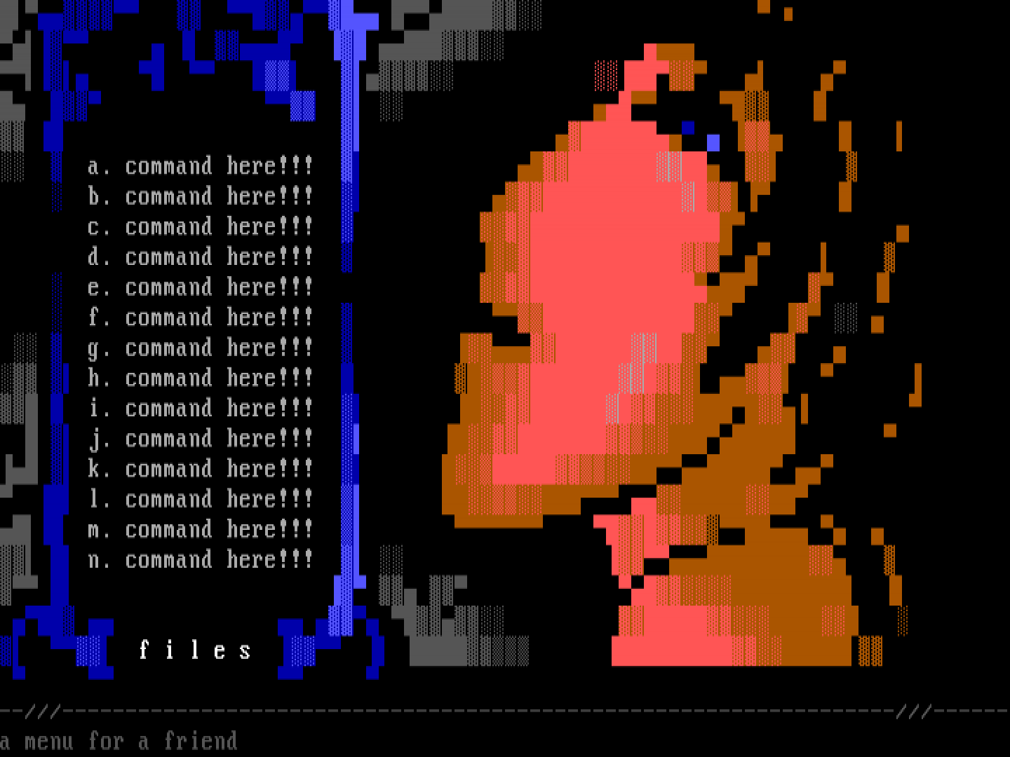 -- ------------------------------------------------------------------ ------a menu for a friend