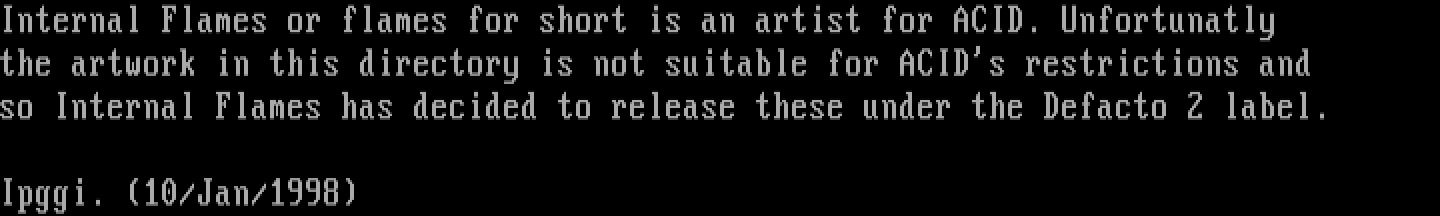 Internal Flames or flames for short is an artist for ACID. Unfortunatly