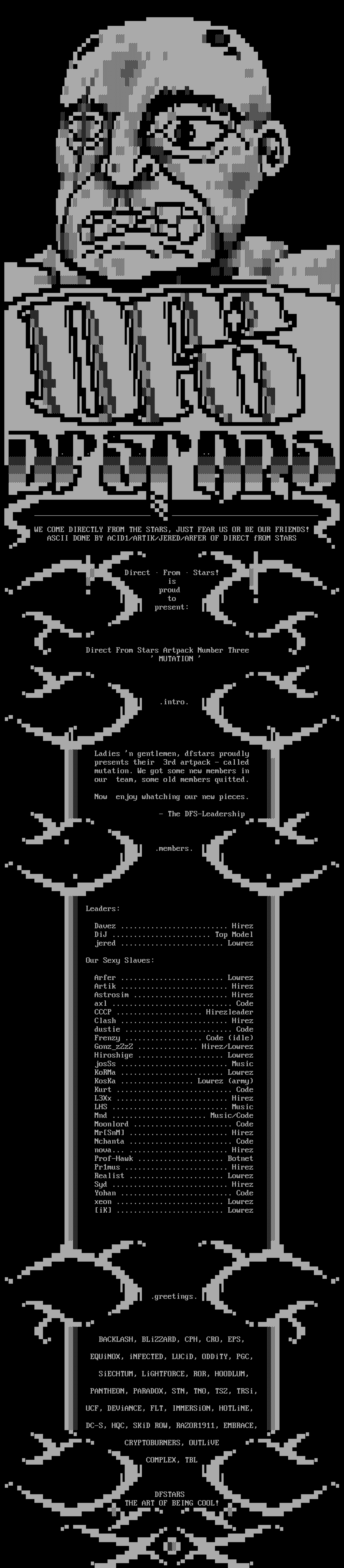 ASCII DONE BY ACID1/ARTIK/JERED/ARFER OF DIRECT fROM STARS