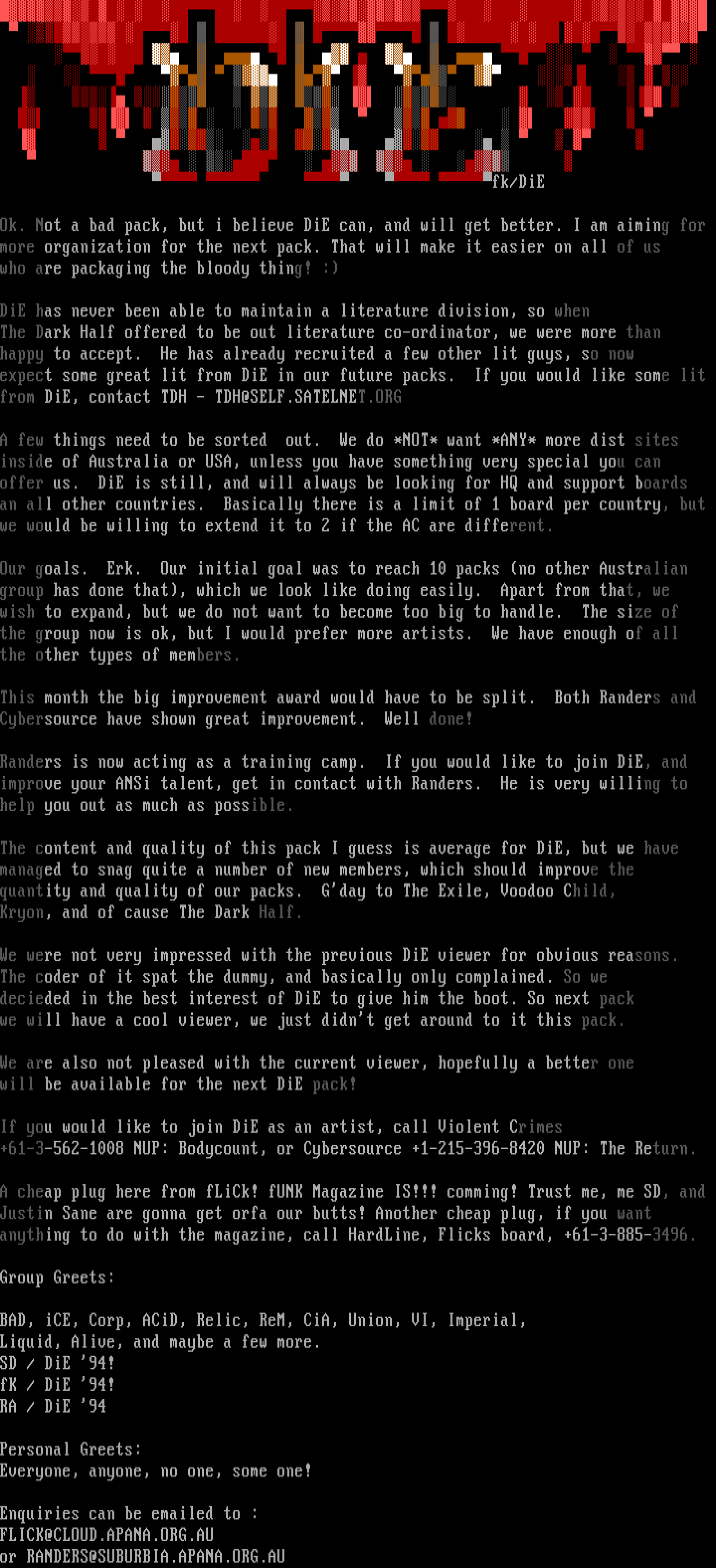 anything to do with the magazine, call HardLine, Flicks board, +61-3-885-3496.
