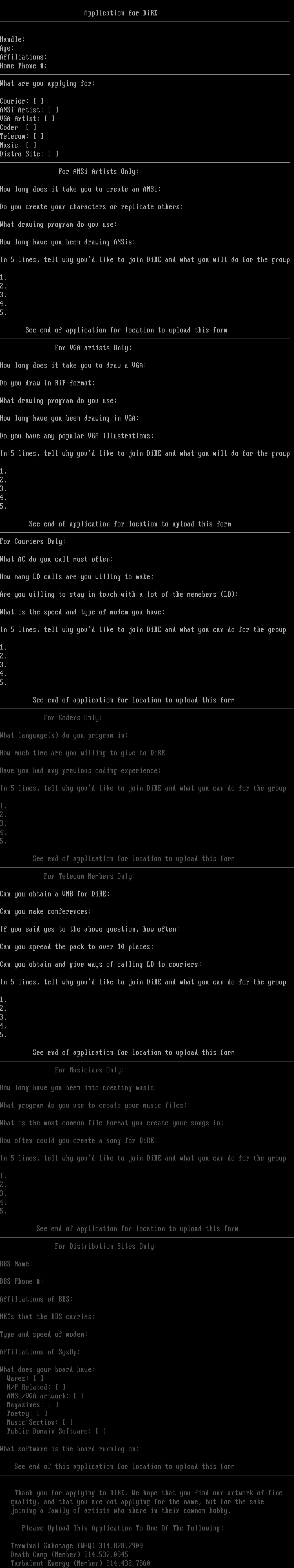 Thank you for applying to DiRE. We hope that you find our artwork of fine