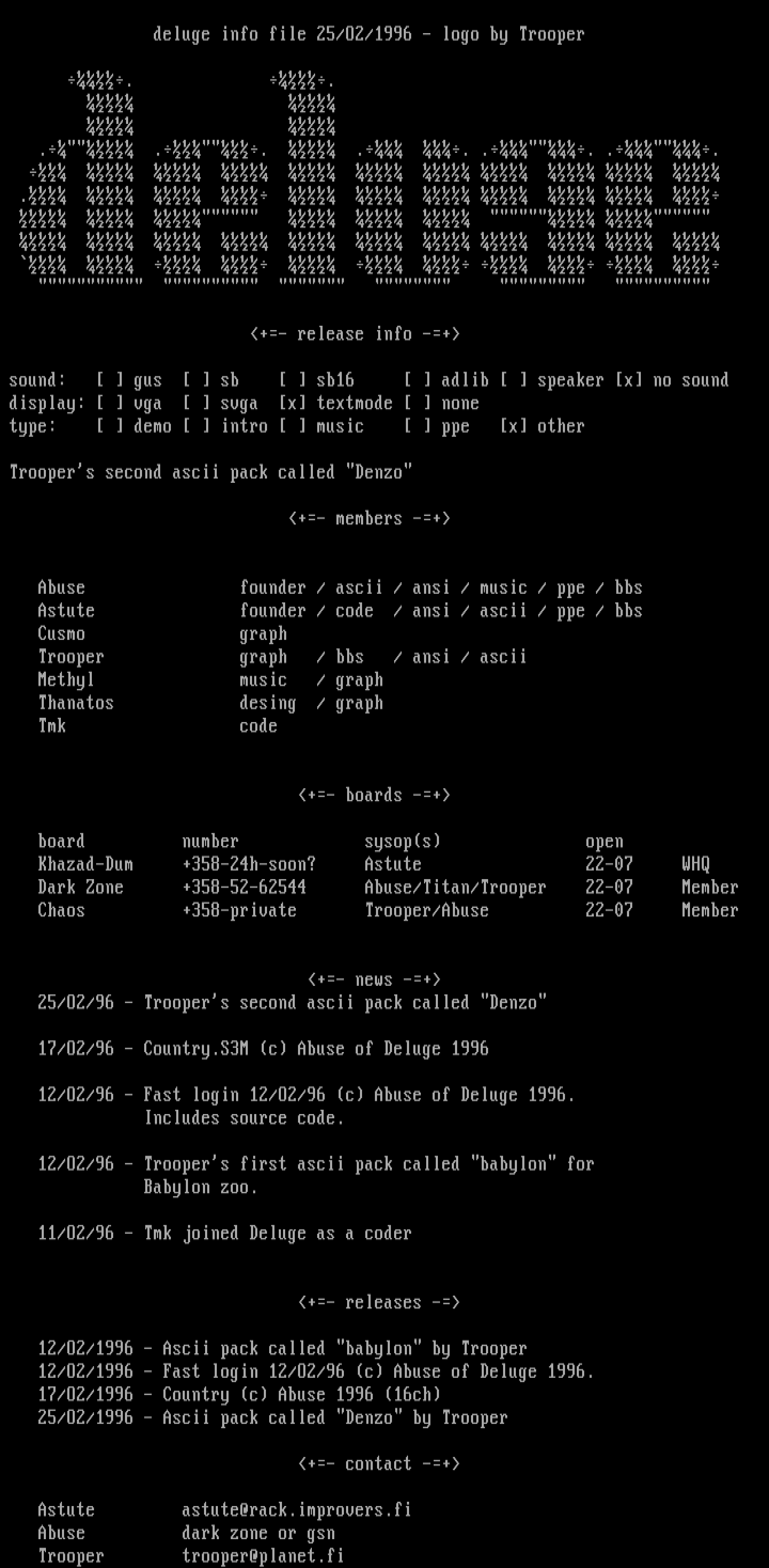 25/O2/1996 - Ascii pack called Denzo by Trooper