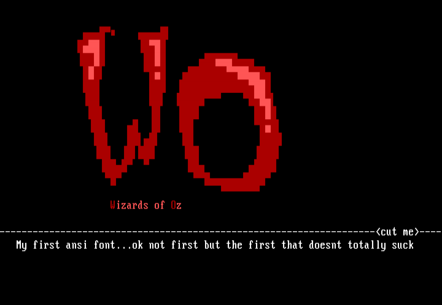 --------------------------------------------------------------------cut me---- My first ansi font...ok not first but the first that doesnt totally suck