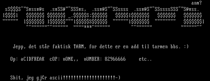Jepp, det str faktisk TARM, for dette er en add til tarmen bbs. :