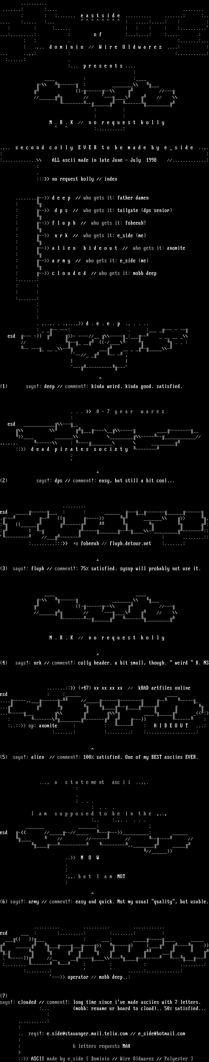 .,.. s e c o n d c o l l y E V E R t o b e m a d e b y e s i d e ..,.: ::............. ALL ascii made in late June - July 1998 //.............: :