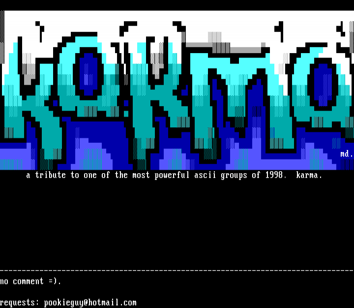 . a tribute to one of the most powerful ascii groups of 1998. karma.