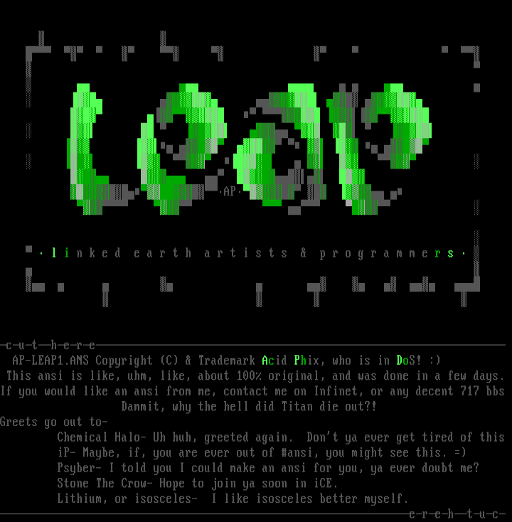 AP-LEAP1.ANS Copyright C Trademark Acid Phix, who is in DoS! :