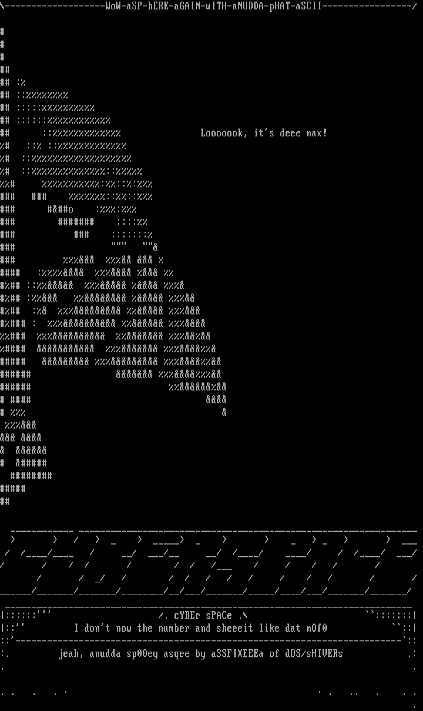 -------------------WoW-aSP-hERE-aGAIN-wITH-aNUDDA-pHAT-aSCII-----------------/