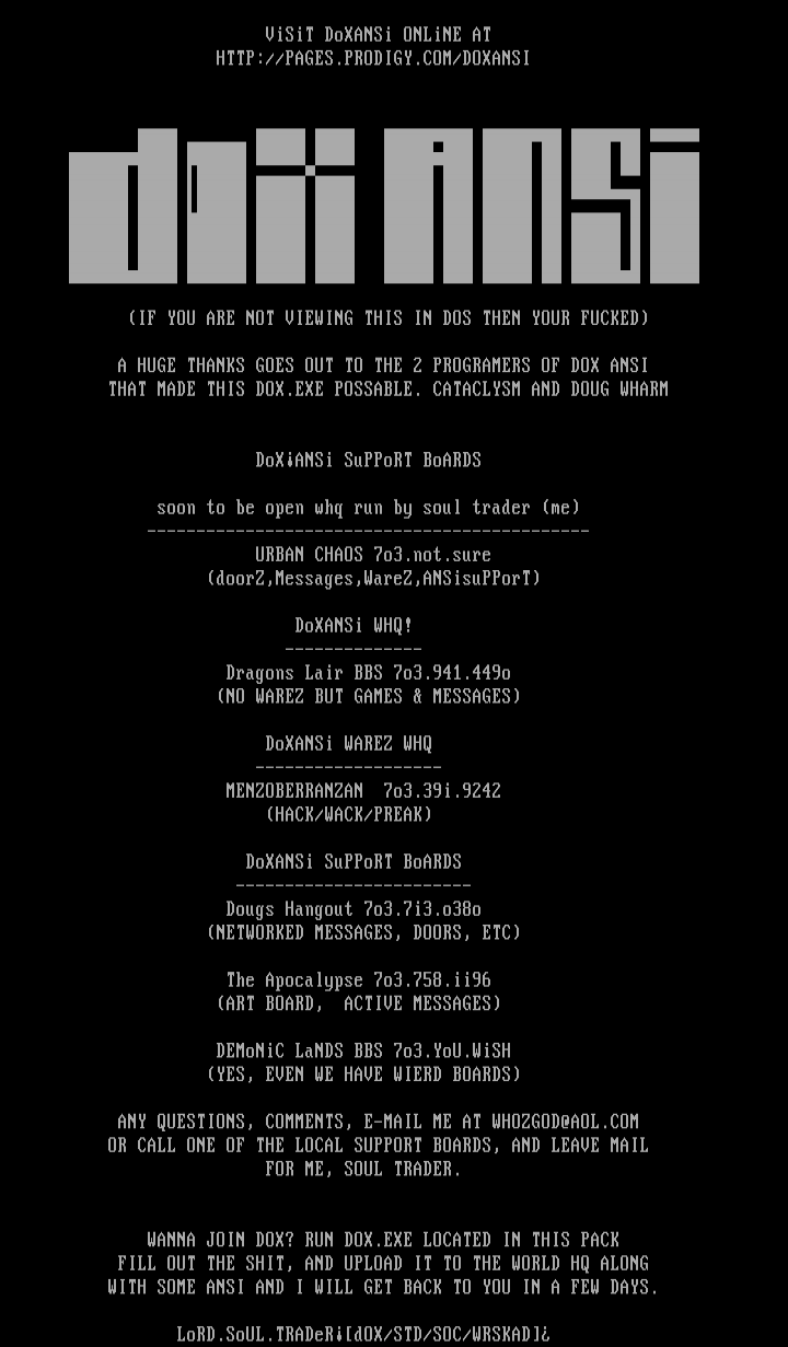 A HUGE THANKS GOES OUT TO THE 2 PROGRAMERS OF DOX ANSI
