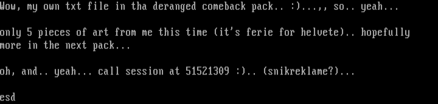 Wow, my own txt file in tha deranged comeback pack.. :...,, so.. yeah...