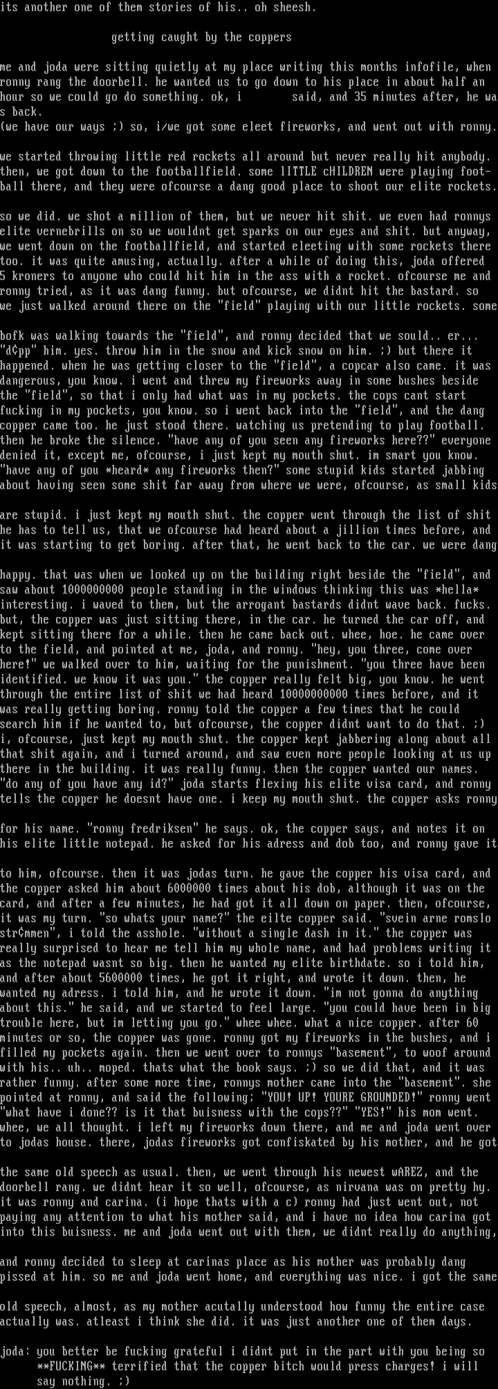 for his name. ronny fredriksen he says. ok, the copper says, and notes it on