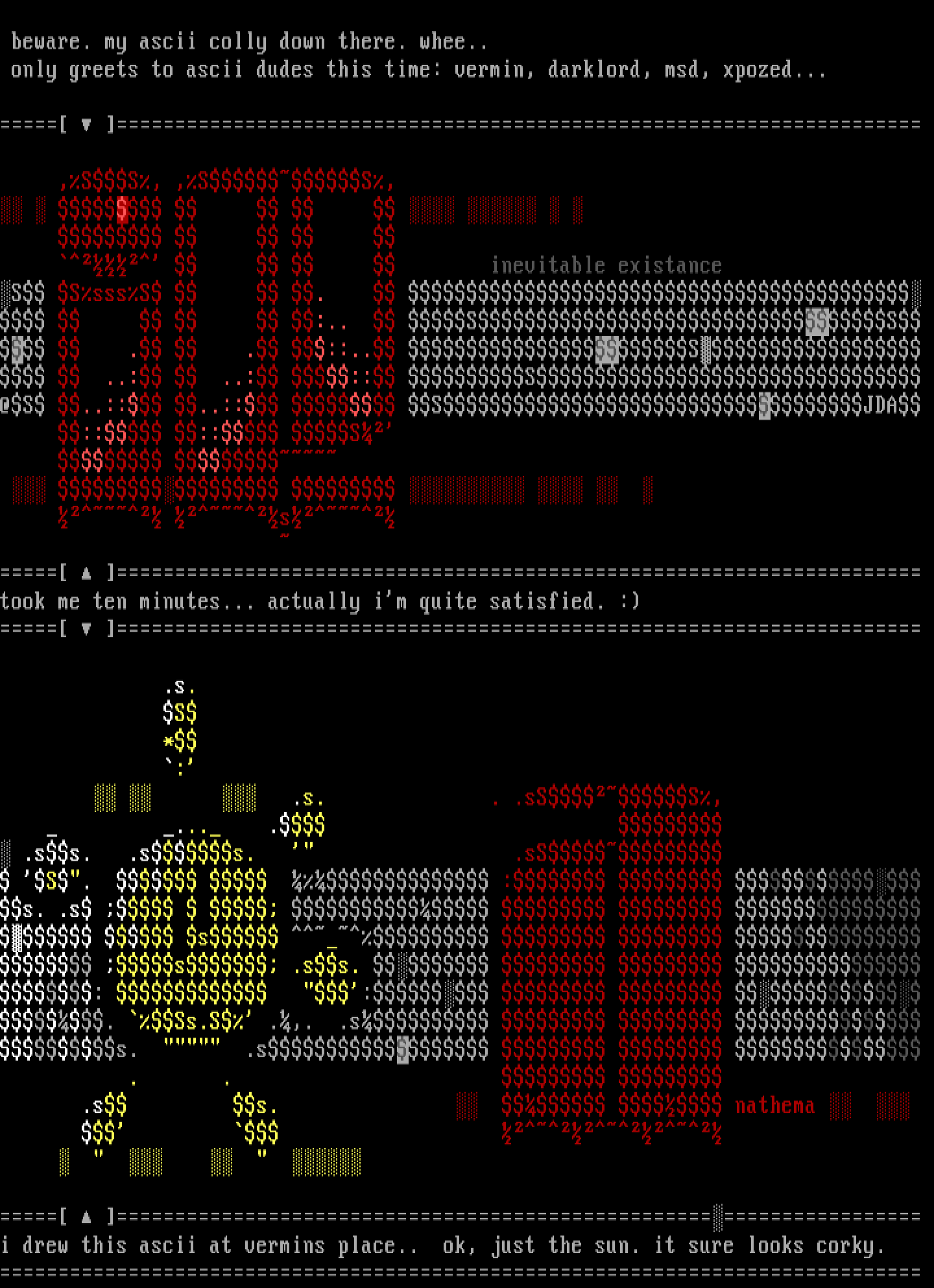 i drew this ascii at vermins place.. ok, just the sun. it sure looks corky.