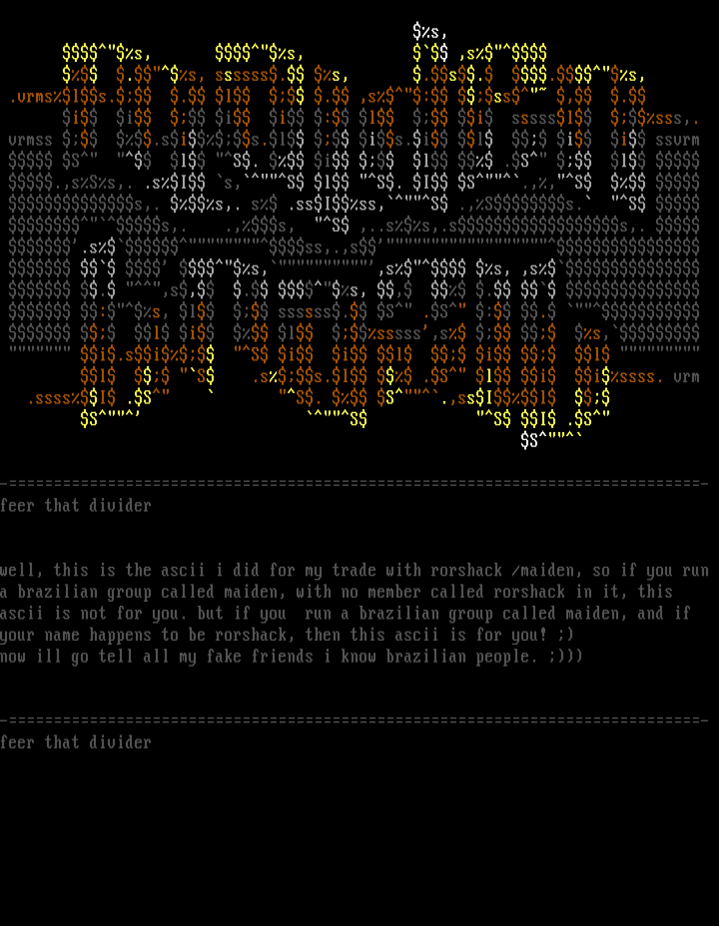 well, this is the ascii i did for my trade with rorshack /maiden, so if you run