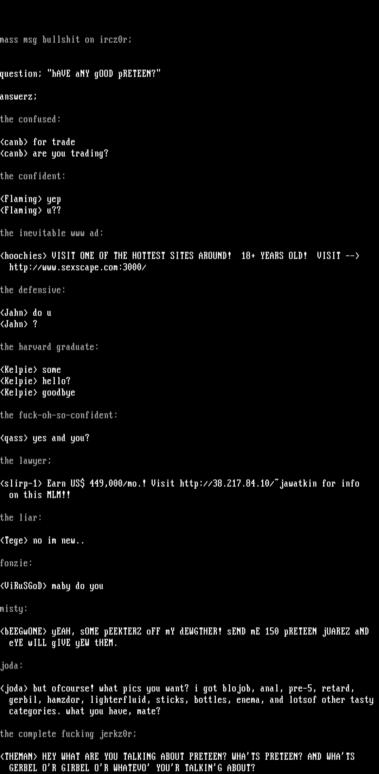 bEEGwONE yEAH, sOME pEEKTERZ oFF mY dEWGTHER! sEND mE 150 pRETEEN jUAREZ aND