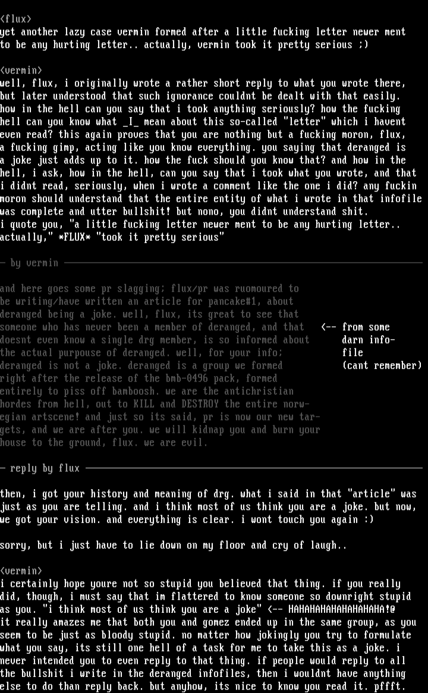 moron should understand that the entire entity of what i wrote in that infofile was complete and utter bullshit! but nono, you didnt understand shit.