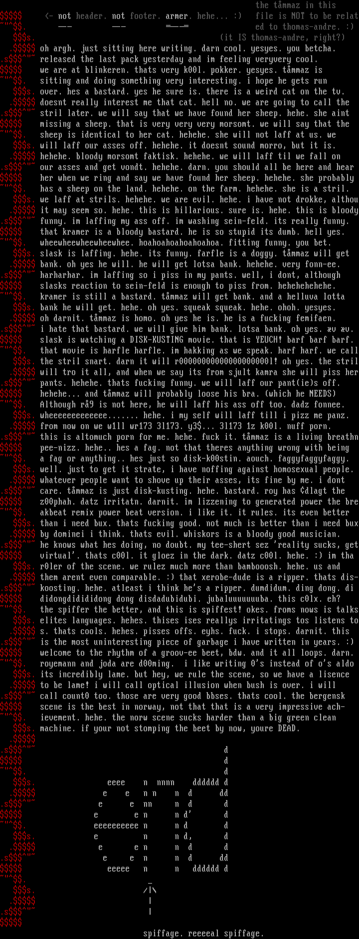 . the spiffer the better, and this is spiffest! okes. froms nows is talks s. elites languages. hehes. thises ises reallys irritatings tos listens to . s. thats cools. hehes. pisses offs. eyhs. fuck. i stops. darnit. this