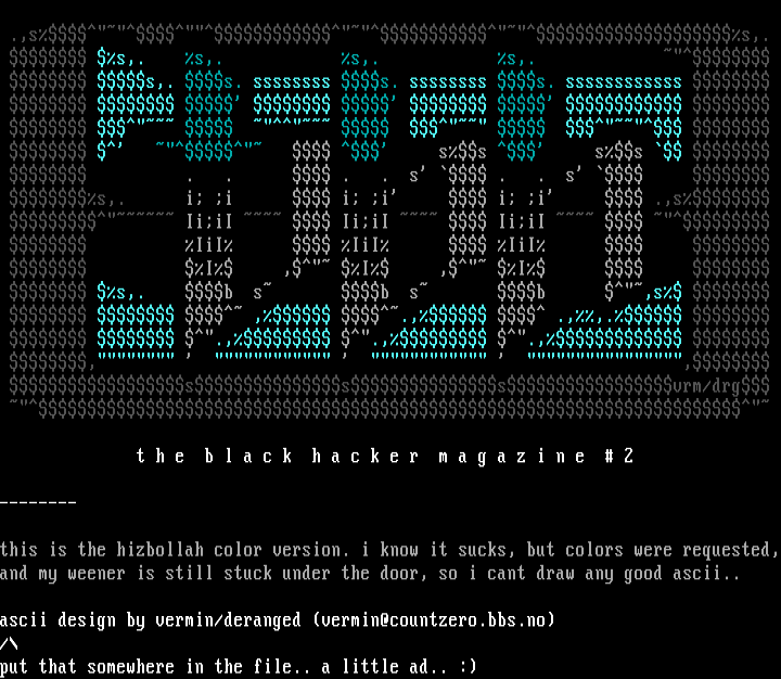 ascii design by vermin/deranged vermin@countzero.bbs.no