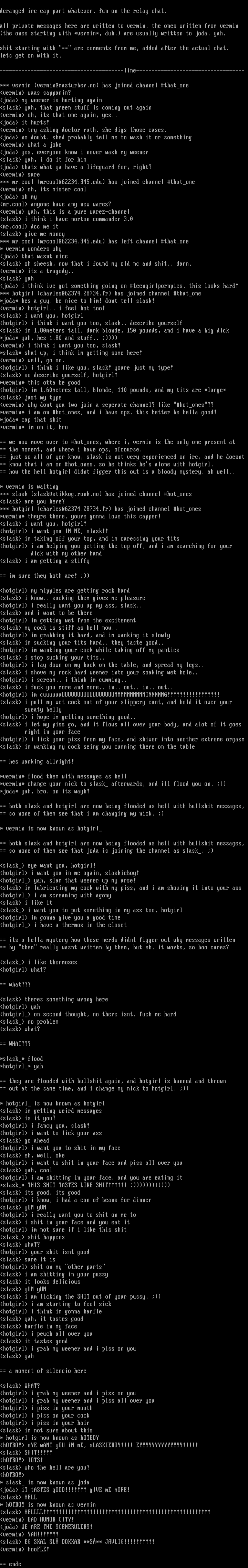 *** vermin vermin@masturber.no has joined channel thatone