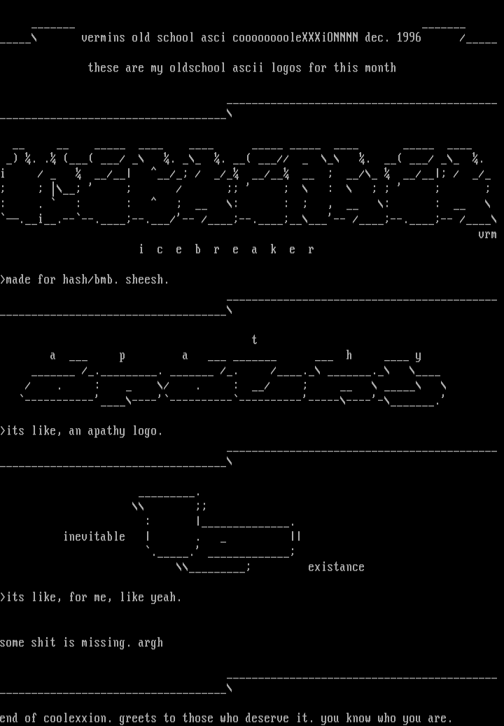 vermins old school asci cooooooooleXXXiONNNN dec. 1996 /