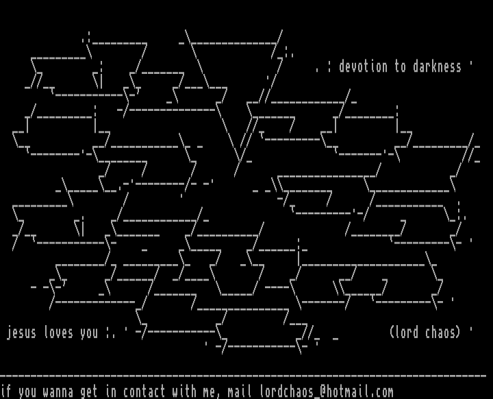 if you wanna get in contact with me, mail lordchaos@hotmail.com