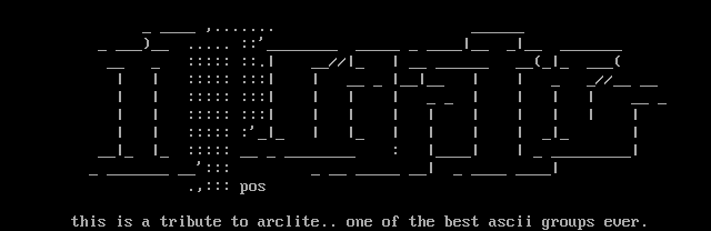 this is a tribute to arclite.. one of the best ascii groups ever.