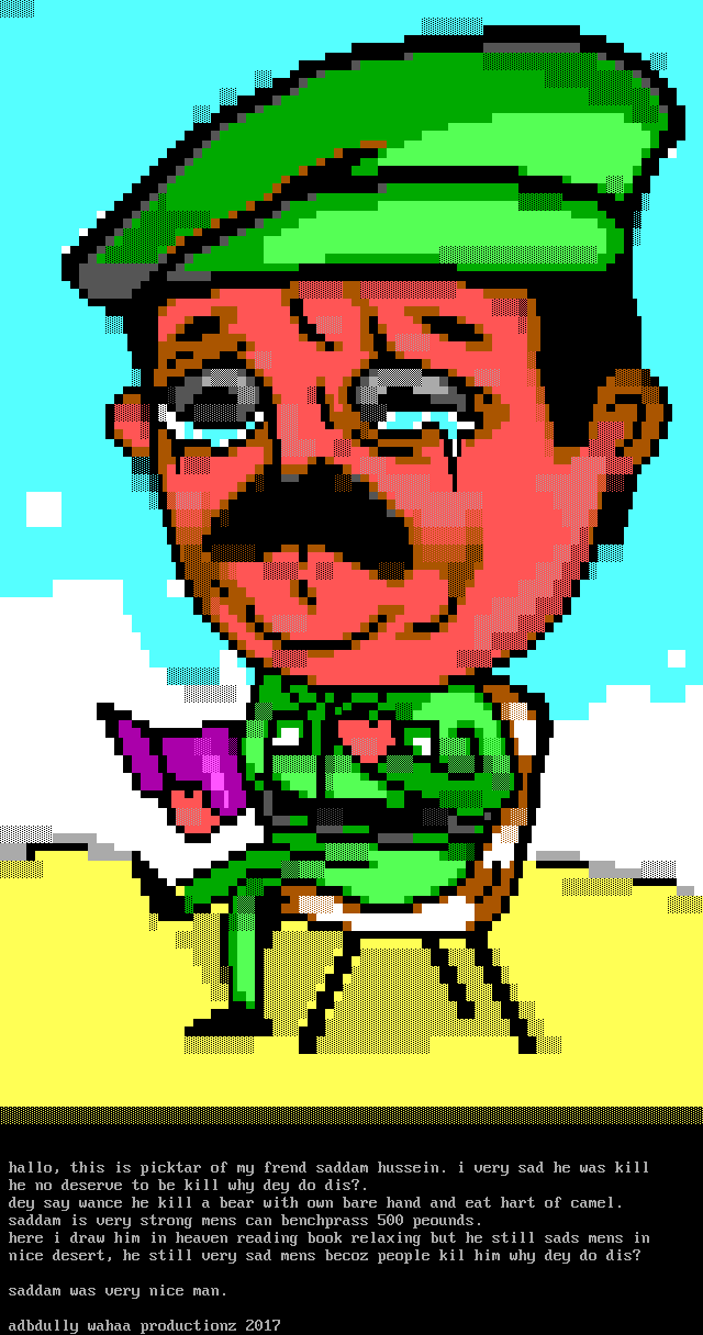 hallo, this is picktar of my frend saddam hussein. i very sad he was kill