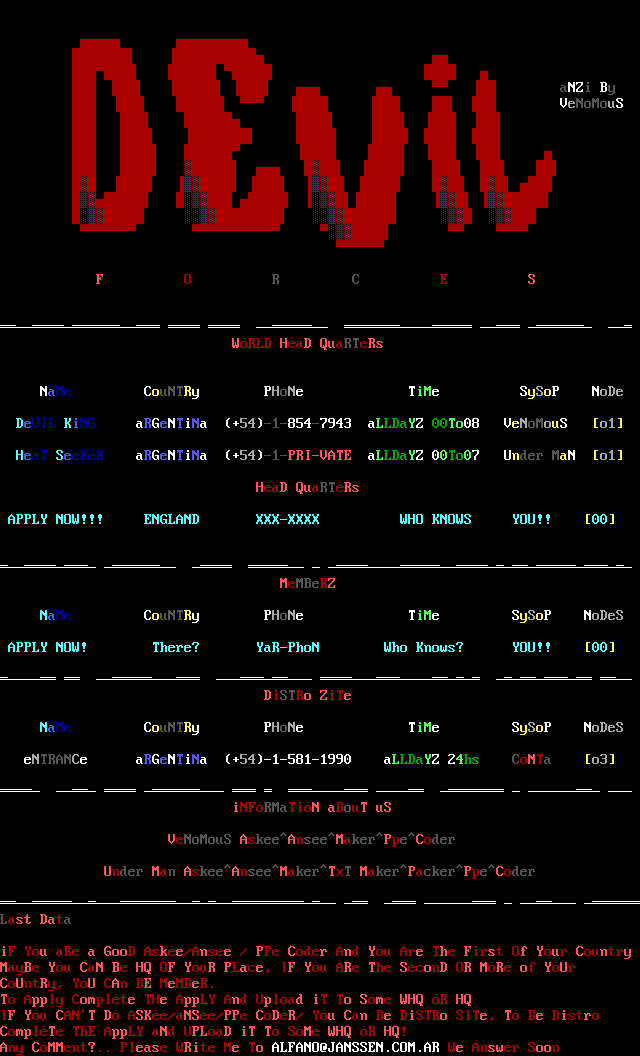 DeViL KiNG aRGeNTiNa +54-1-854-7943 aLLDaYZ 00To08 VeNoMouS o1