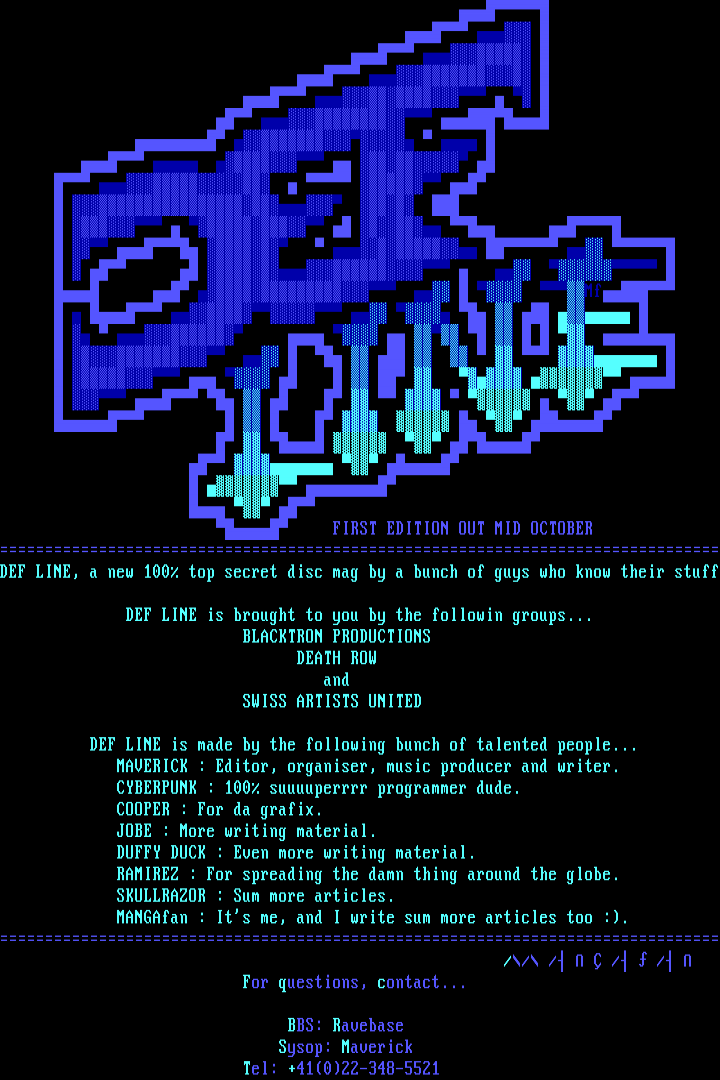 DEF LINE, a new 100 top secret disc mag by a bunch of guys who know their stuff