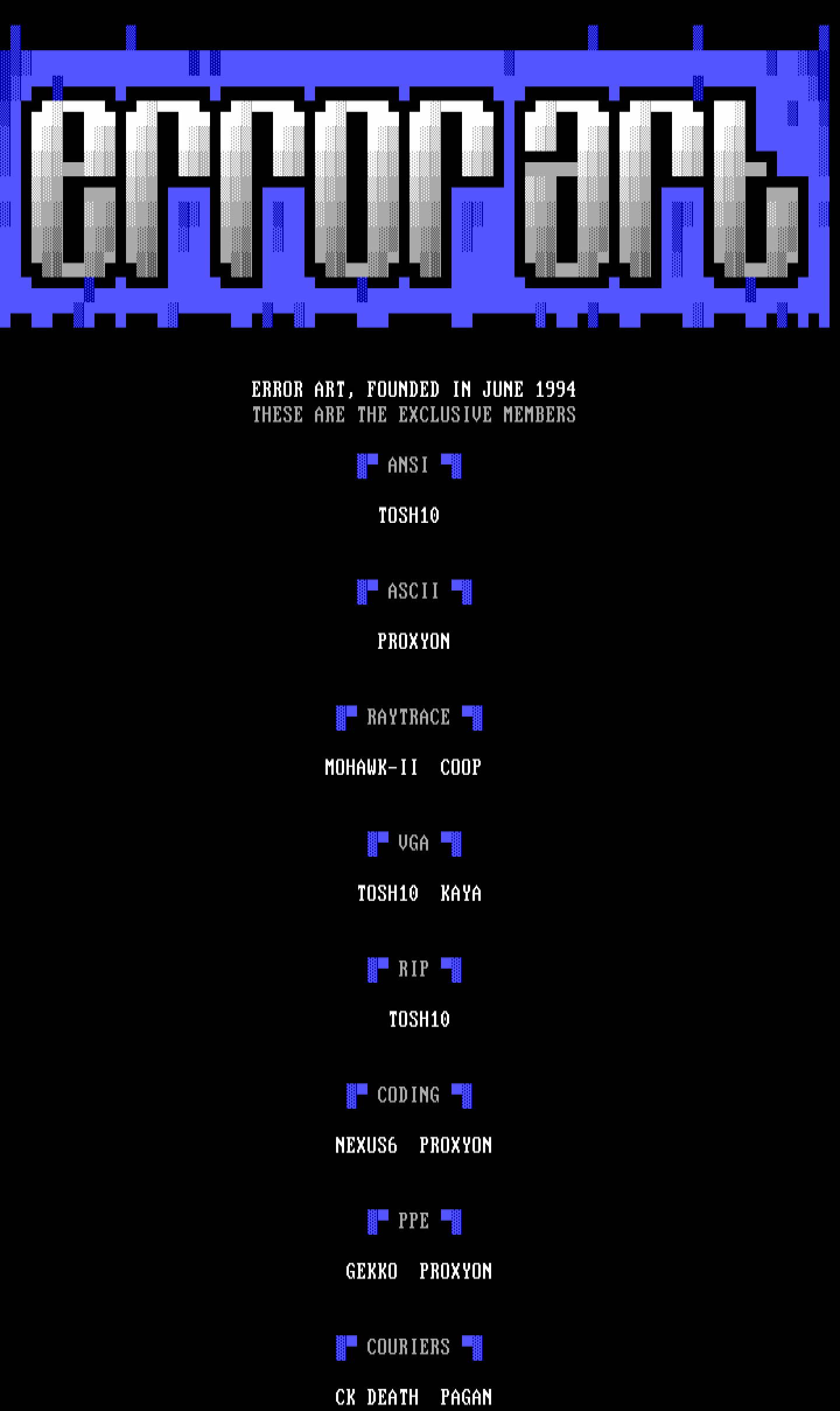 ERROR ART, FOUNDED IN JUNE 1994 THESE