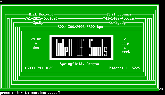 Springfield, Oregon 503-741-1829 Fidonet 1:152/5