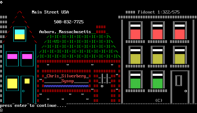 / MainStreetUSA Fidonet1:322/575/ / 508-832-7725 // Auburn,Massachusetts /VS // / grebrevliSsirhCSysop ommmmmmmmmmmmmmmmmmo o C ....eunitnocotretnesserp
