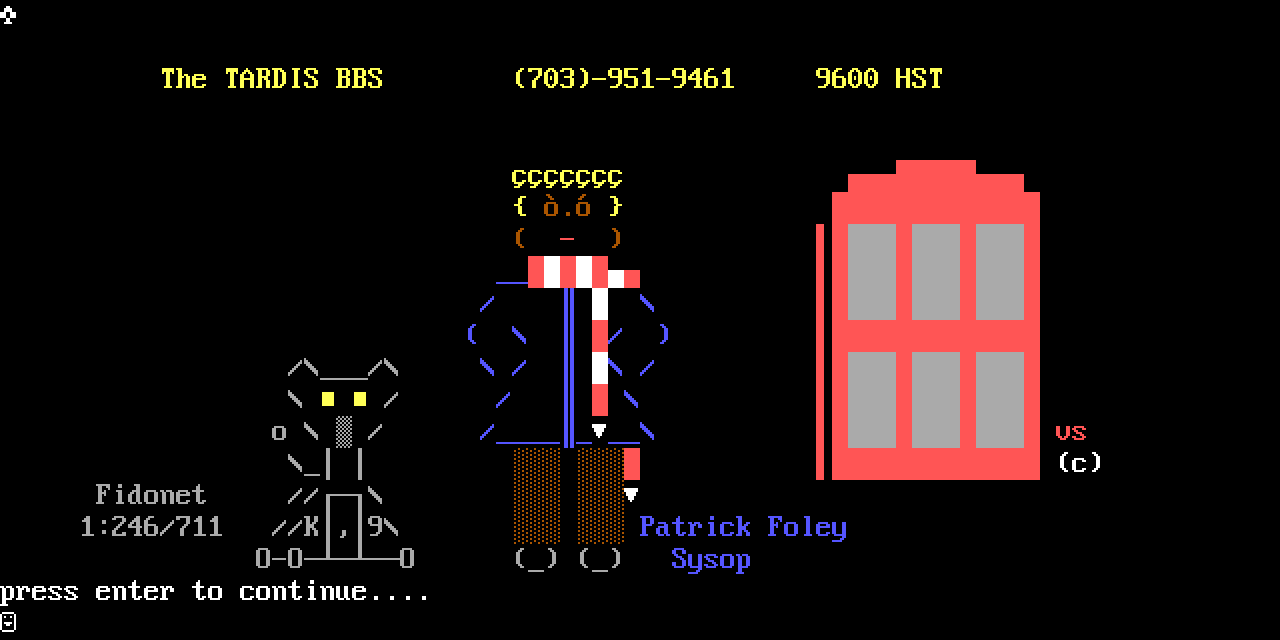 TheTARDISBBS 703-951-9461 9600HST. - / / / sv //o c //tenodiF1:246/711 //K,9 PatrickFoleyposySOO-Opressentertocontinue....