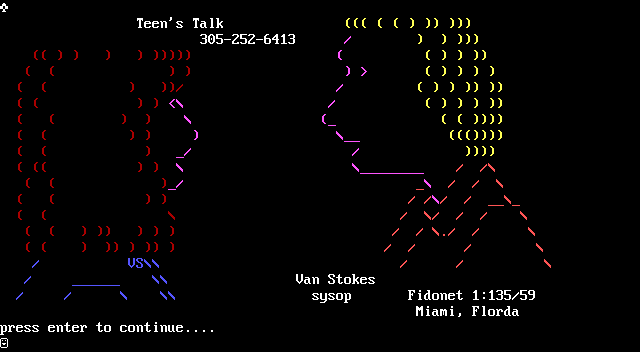 klaTsneeT305-252-6413 / // / // / / / /./ / VS / / sekotSnaV// / sysop Fidonet1:135/59adrolF,imaiMpressentertocontinue....