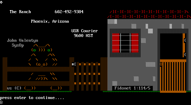 TheRanch 602-492-9384 /---------------------/Phoenix,Arizona USRCourier TSH0069JohnValentyn //pOsySoo // / / O//oo / / // vsC Fidonet1:114/5 pressentertocontinue....