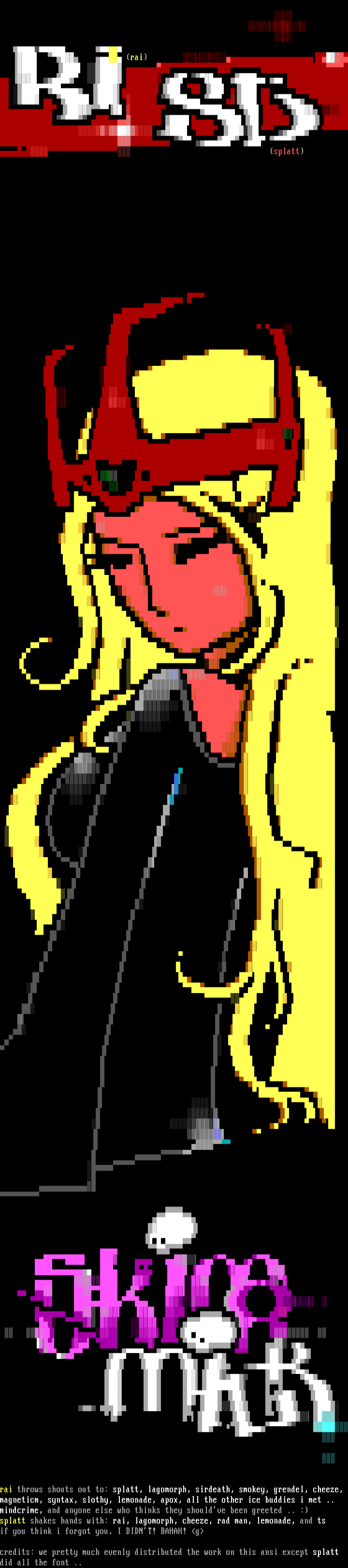 credits: we pretty much evenly distributed the work on this ansi except splatt