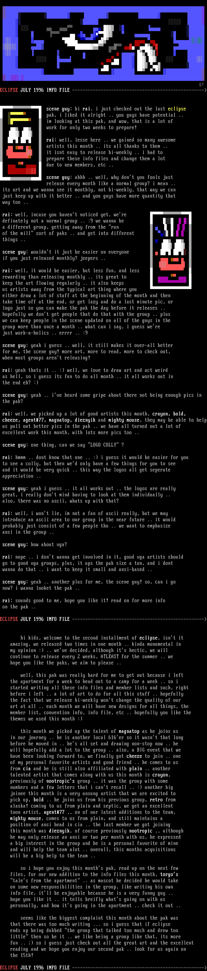 ECLIPSE JULY 1996 INFO FILE ---------------------------------------------------