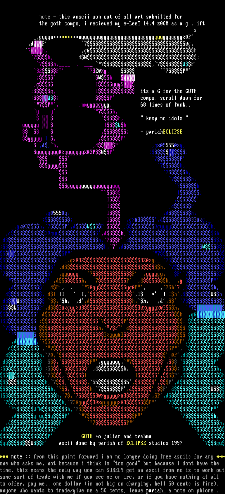 ,dg yyyP 7P 7h, ,dP 7P 7h,,dP 7P GOTH +o julian and trahma 7yyWP ascii done by pariah of ECLIPSE studios 1997 7gy