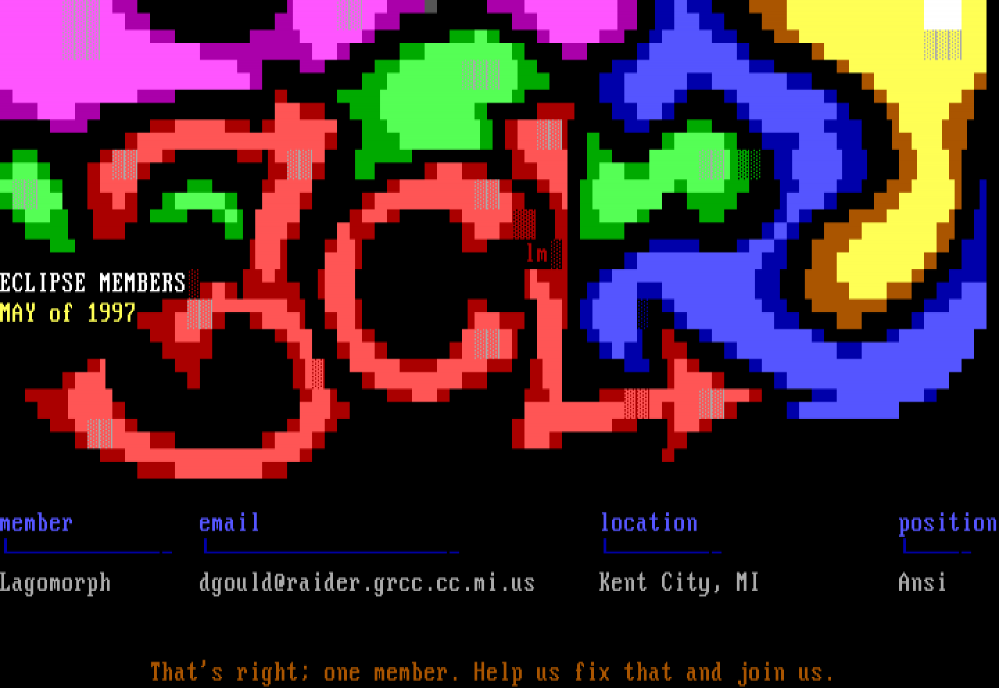 Lagomorph dgould@raider.grcc.cc.mi.us Kent City, MI Ansi