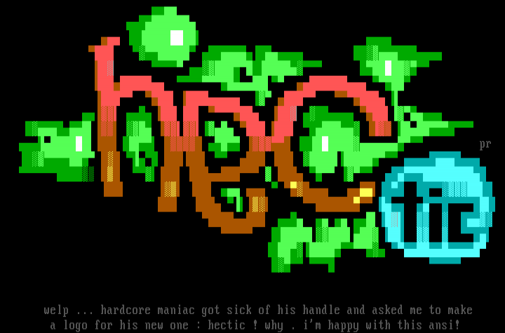 a logo for his new one : hectic ! why . im happy with this ansi!