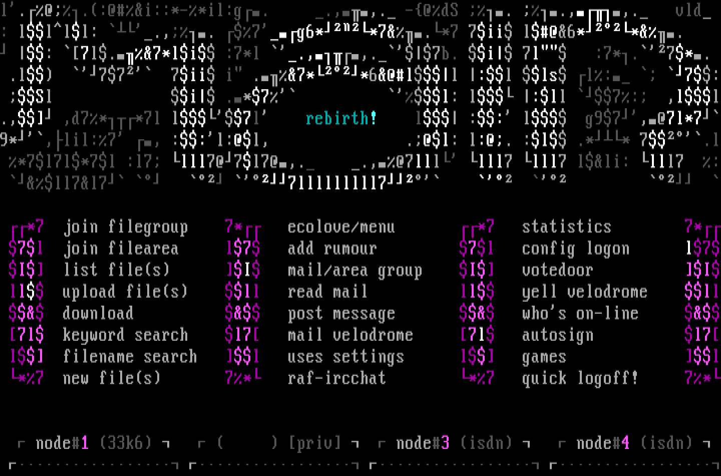 *7 join filegroup 7* ecolove/menu *7 statistics 7* 7l join filearea l7 add rumour 7l config logon l7 I list files I mail/area group I votedoor I ll upload files ll read mail ll yell velodrome ll download post message whos on-line 7l keyword search l7 mail velodrome 7l autosign l7 l filename search l uses settings l games l *7 new files 7* raf-ircchat *7 quick logoff! 7*