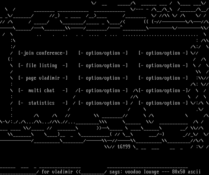 / for vladimir / says: voodoo lounge --- 80x50 ascii