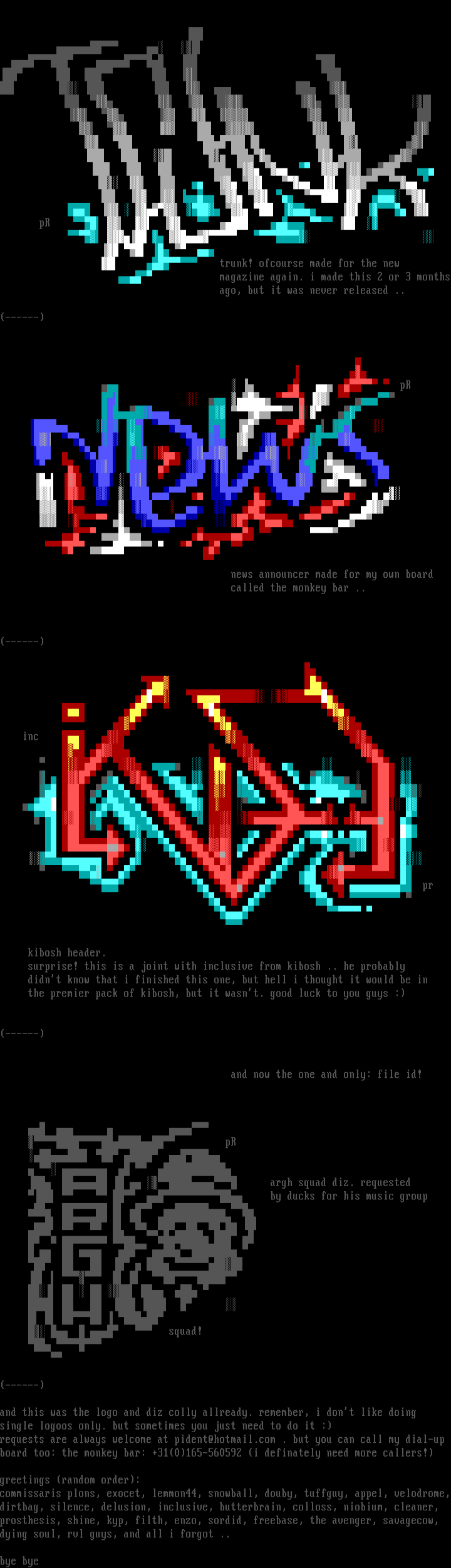 commissaris plons, exocet, lemmon44, snowball, douby, tuffguy, appel, velodrome,dirtbag, silence, delusion, inclusive, butterbrain, colloss, niobium, cleaner,