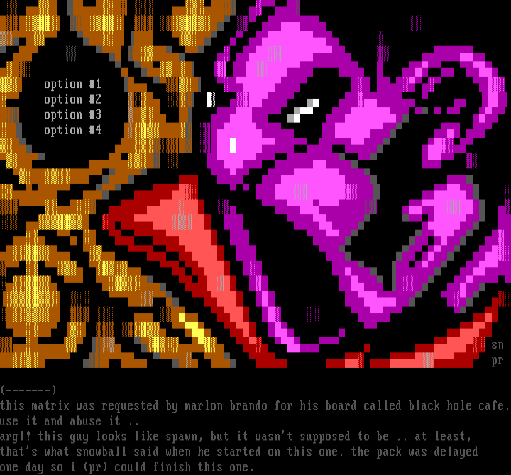 this matrix was requested by marlon brando for his board called black hole cafe.use it and abuse it ..