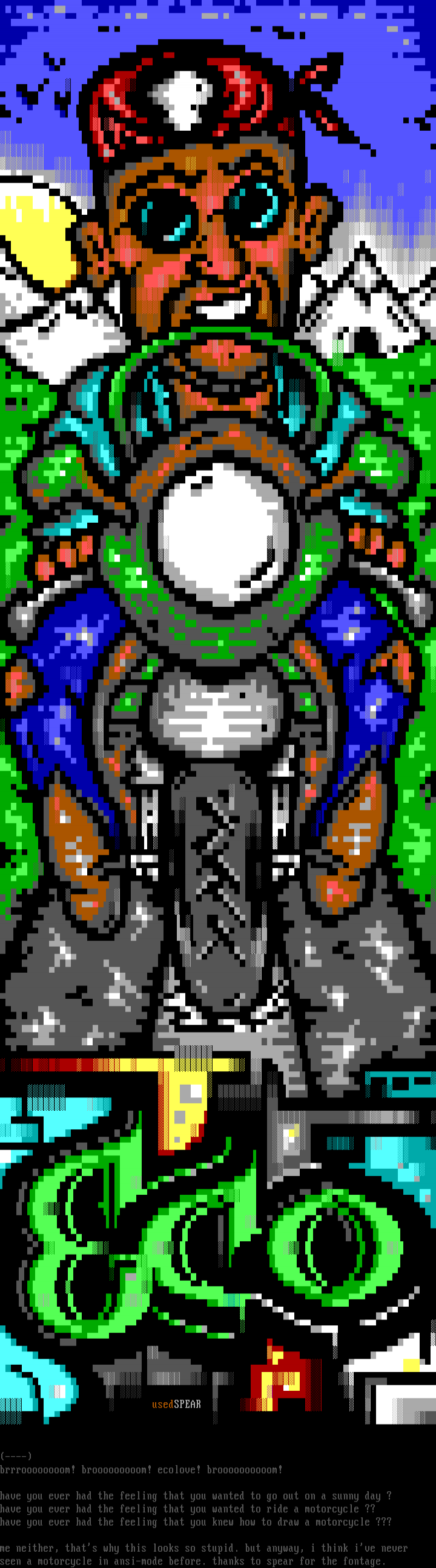 seen a motorcycle in ansi-mode before. thanks to spear for the fontage.
