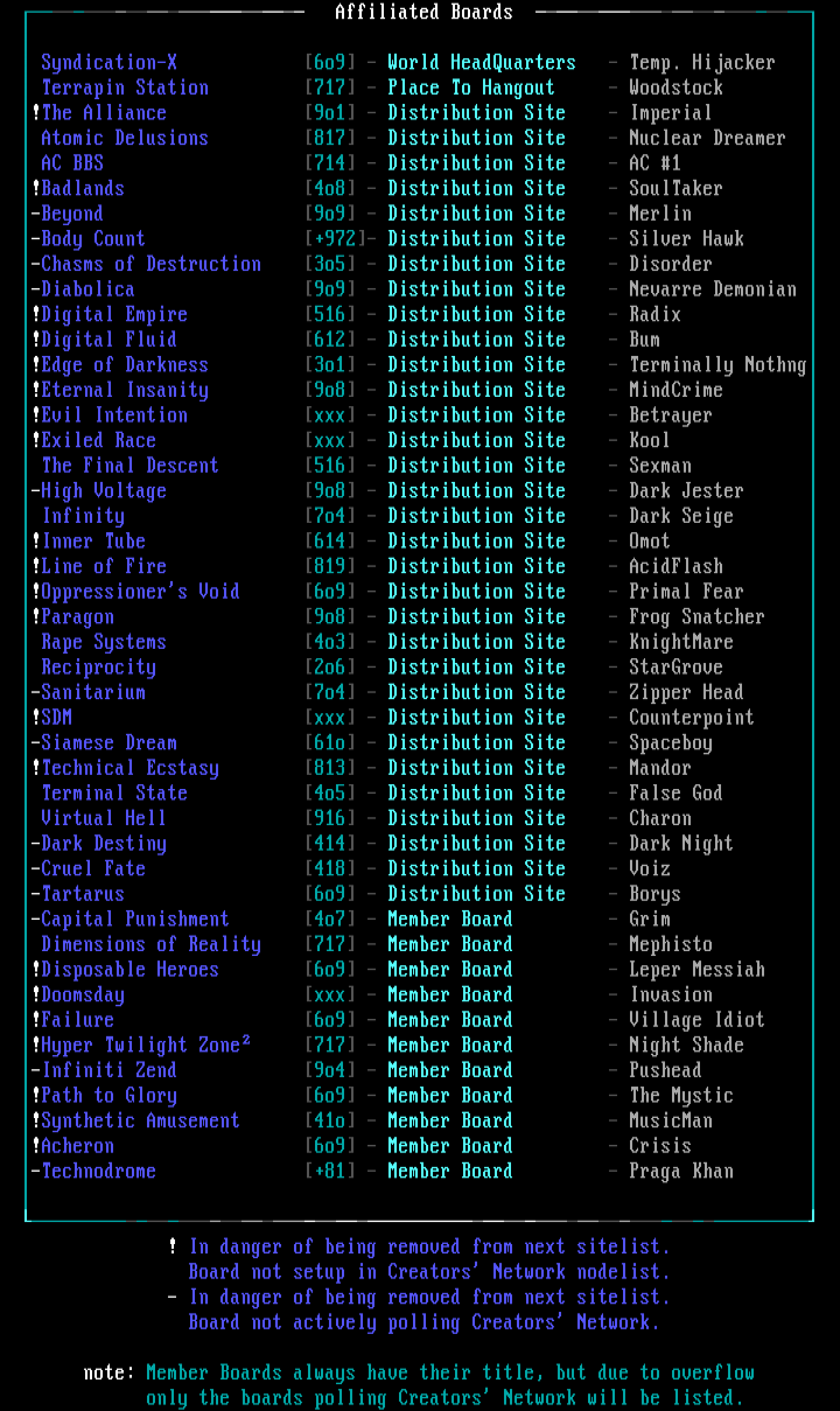 - March 1995 Sitelist