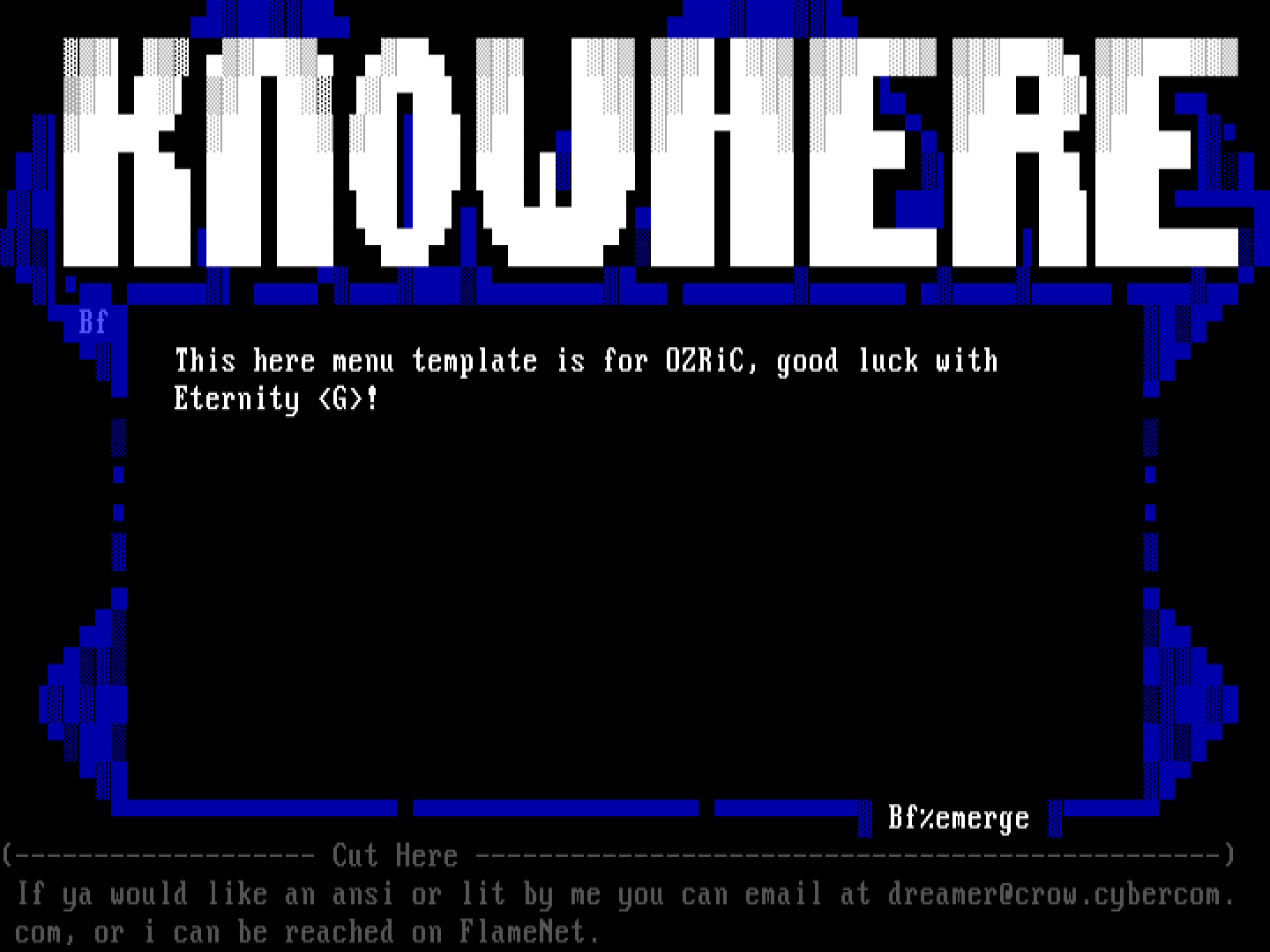 If ya would like an ansi or lit by me you can email at dreamer@crow.cybercom.