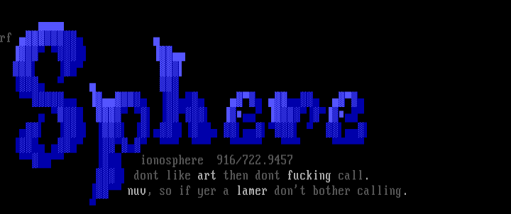 ionosphere 916/722.9457 dont like art then dont fucking call.