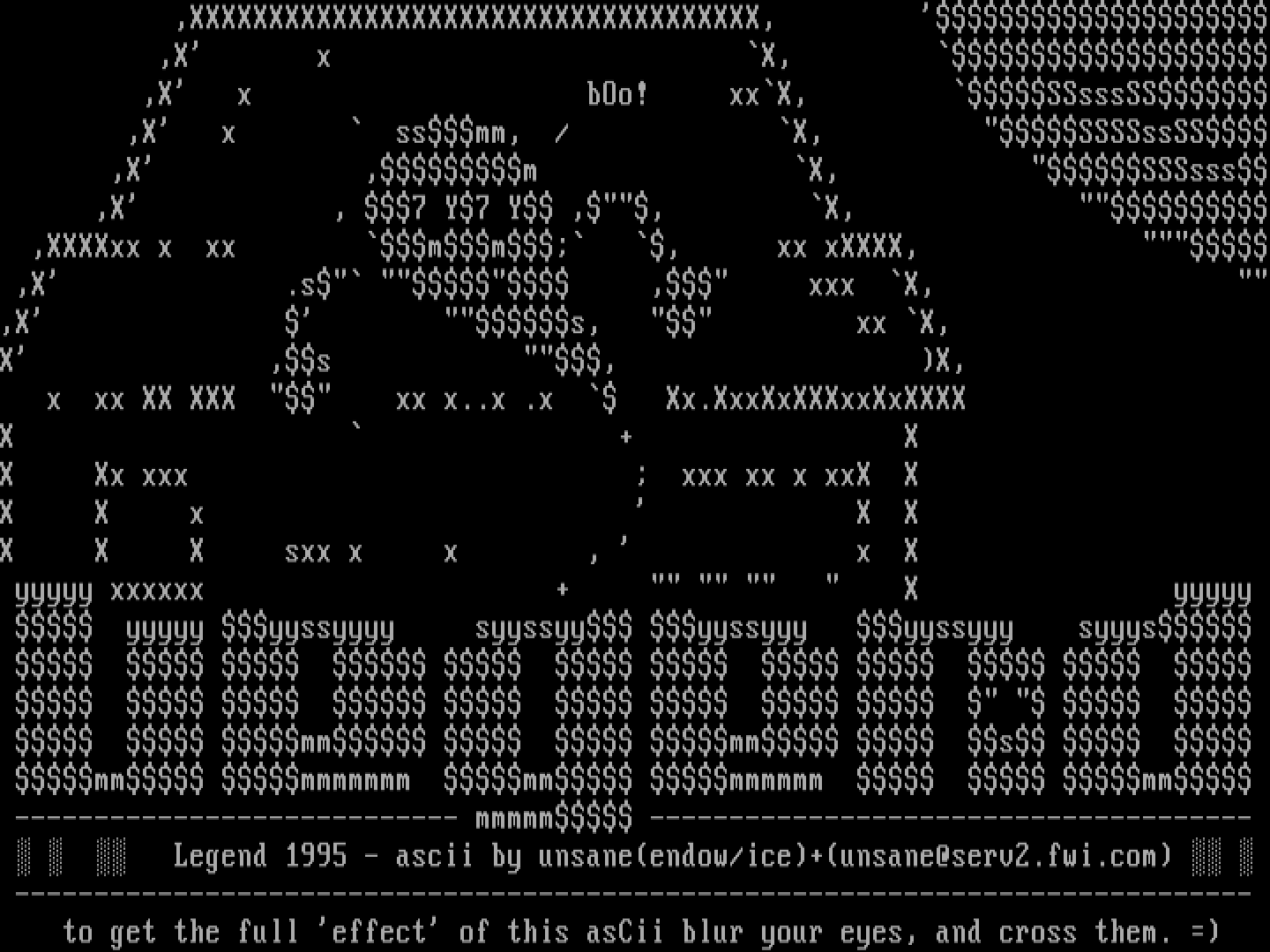 Legend 1995 - ascii by unsaneendow/ice+unsane@serv2.fwi.com