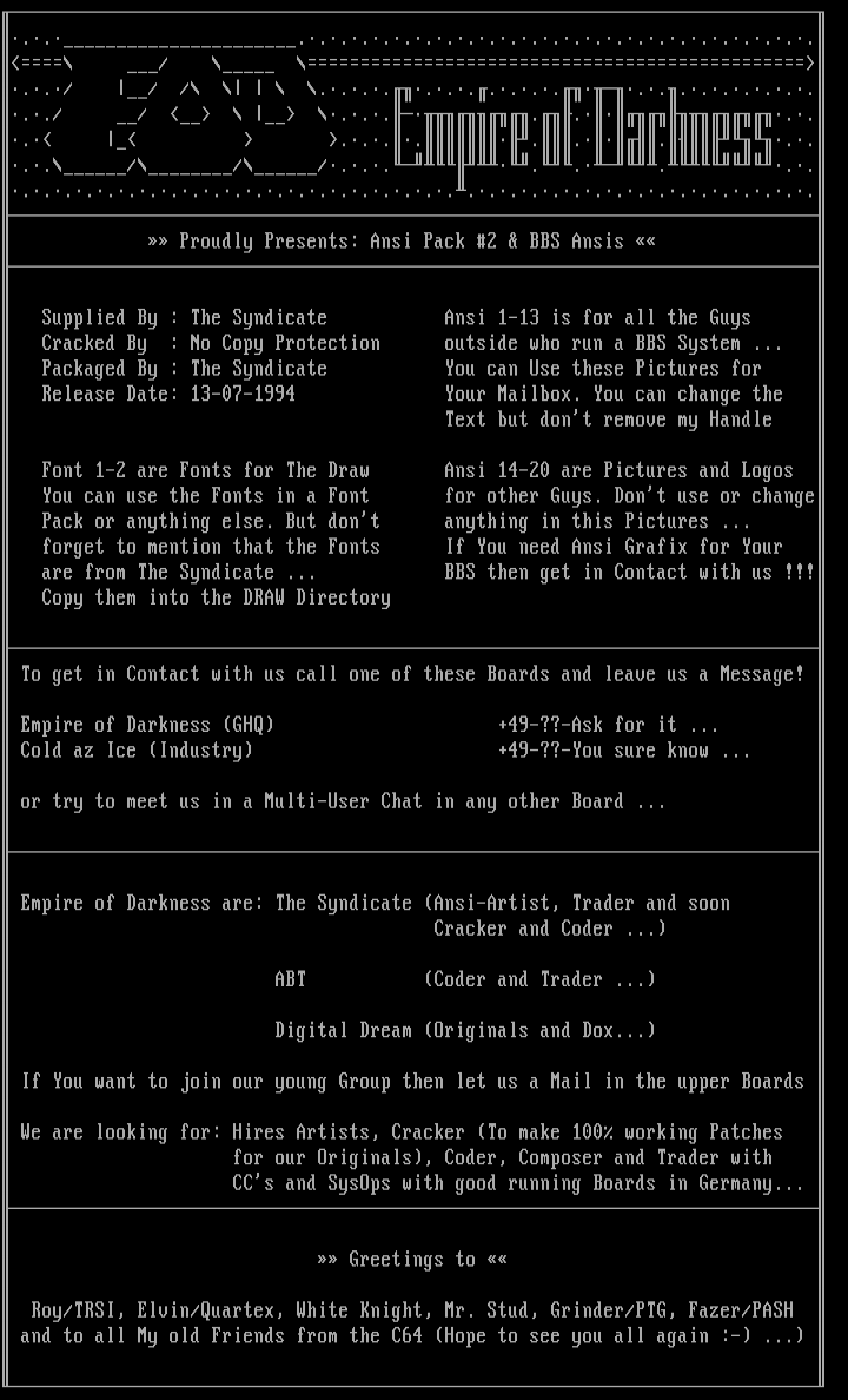 are from The Syndicate ... BBS then get in Contact with us !!!