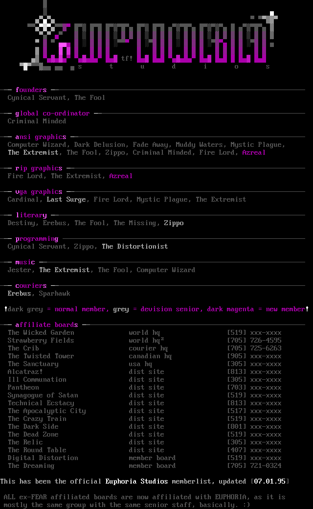This has been the official Euphoria Studios memberlist, updated 07.01.95